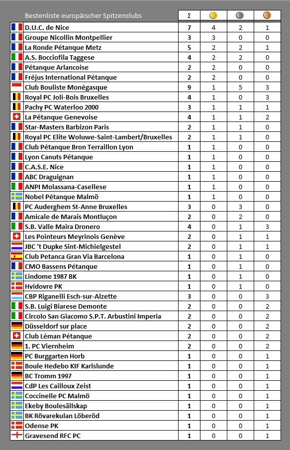 Pétanque Europacup der Vereinsmeister - European Champion Clubs' Cup of Pétanque - Coupe d'Europe des Clubs Champions de Pétanque